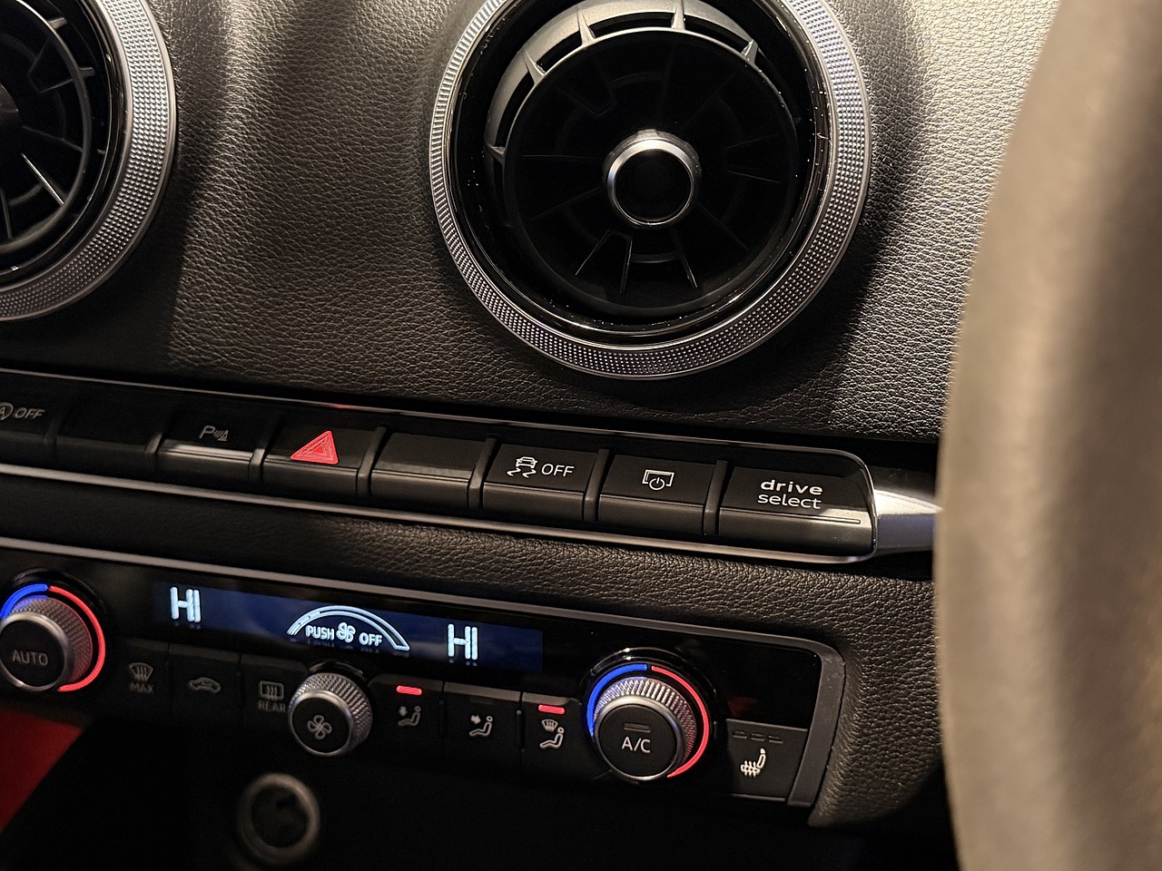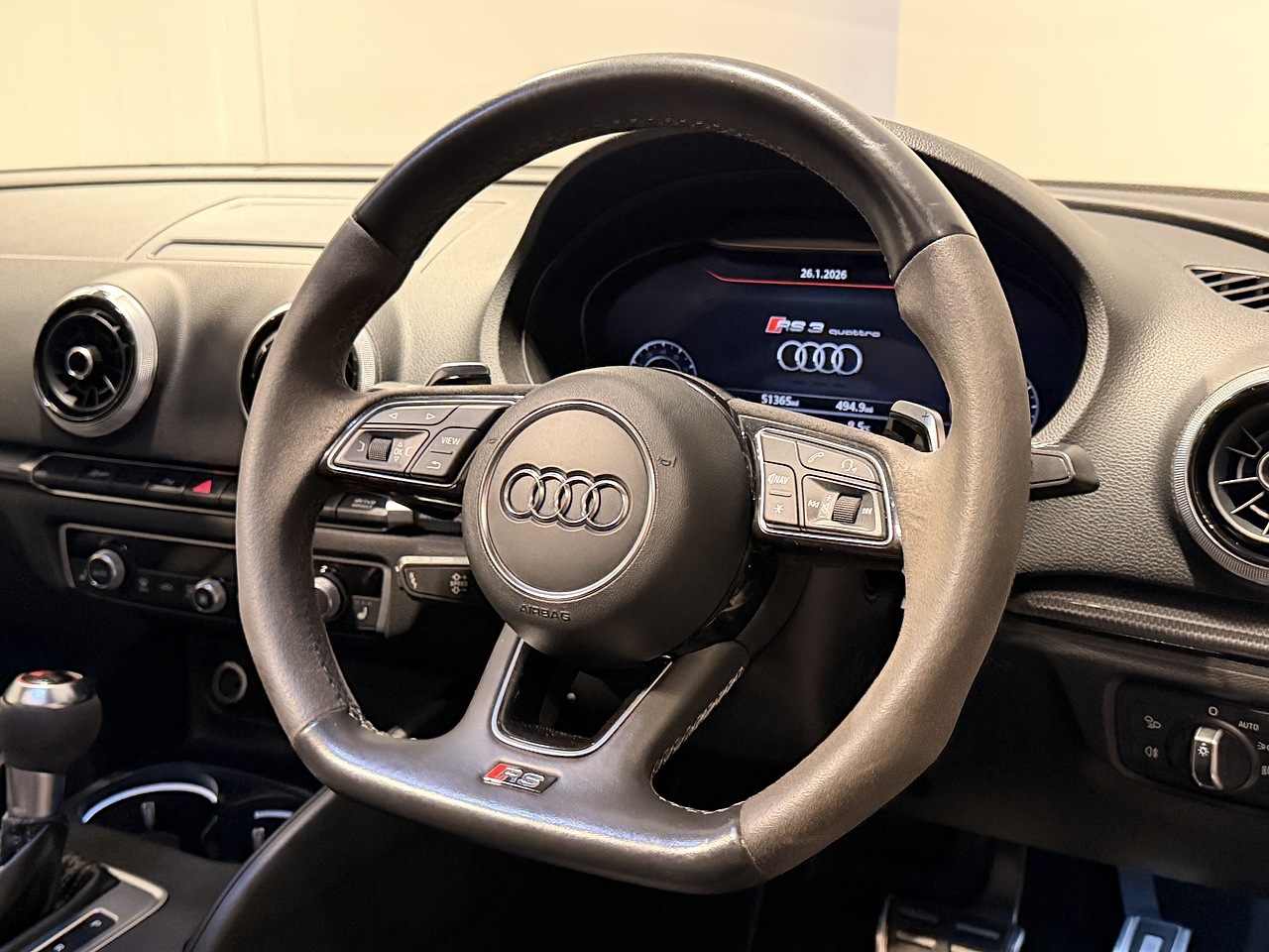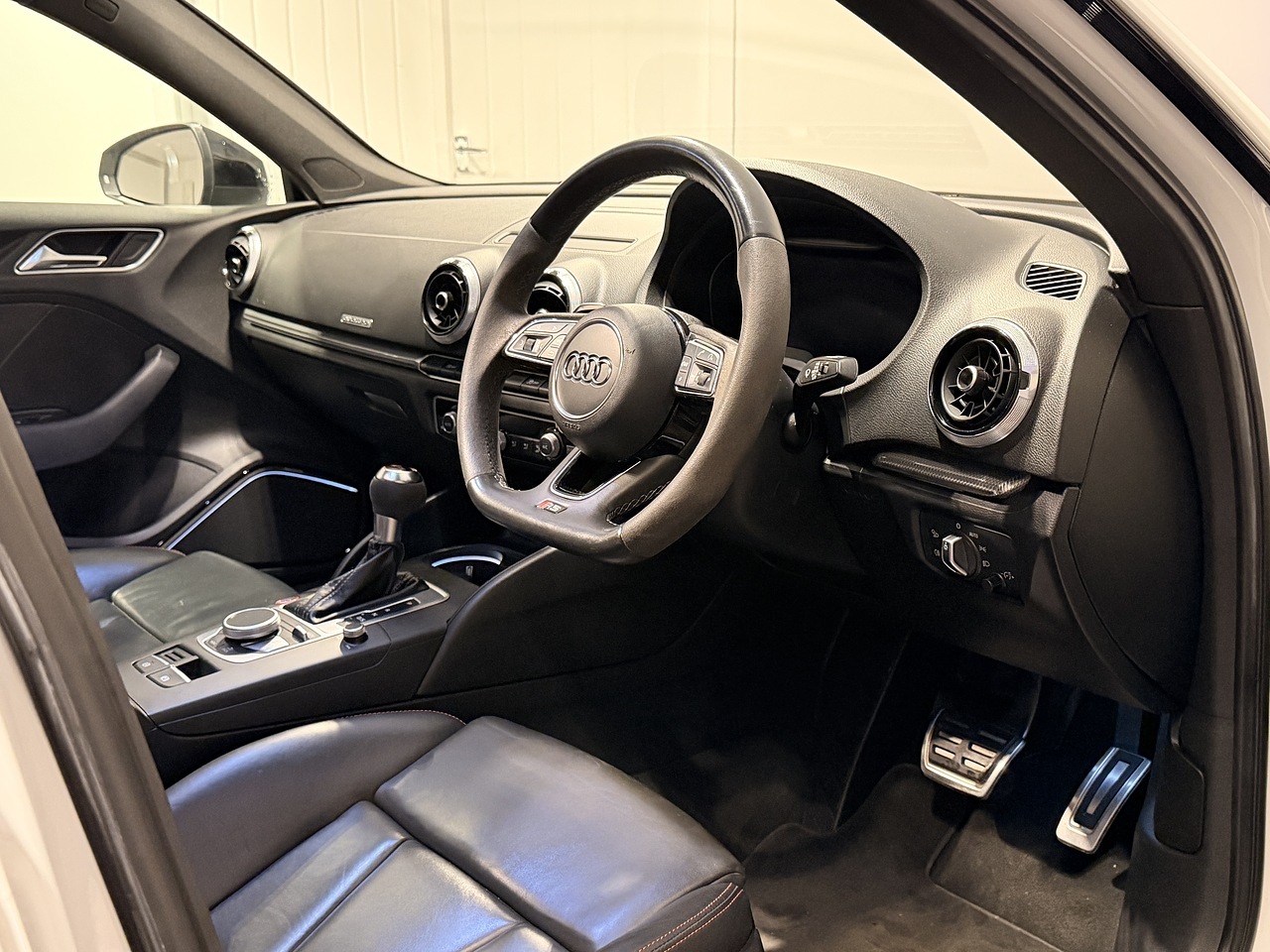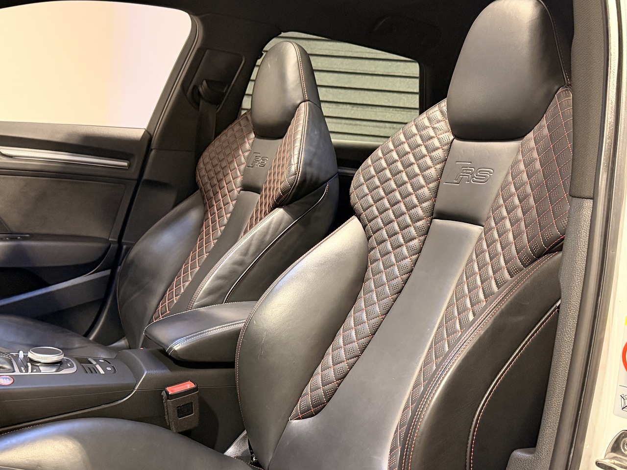 On the exterior, the RS3 benefits from the gloss black styling package, red brake calipers, and striking 19-inch 5-arm rotor alloy wheels, giving it a purposeful and aggressive stance. Practical features include cruise control, heated electric door mirrors, and front and rear parking sensors with rear camera, making it just as easy to live with day to day.