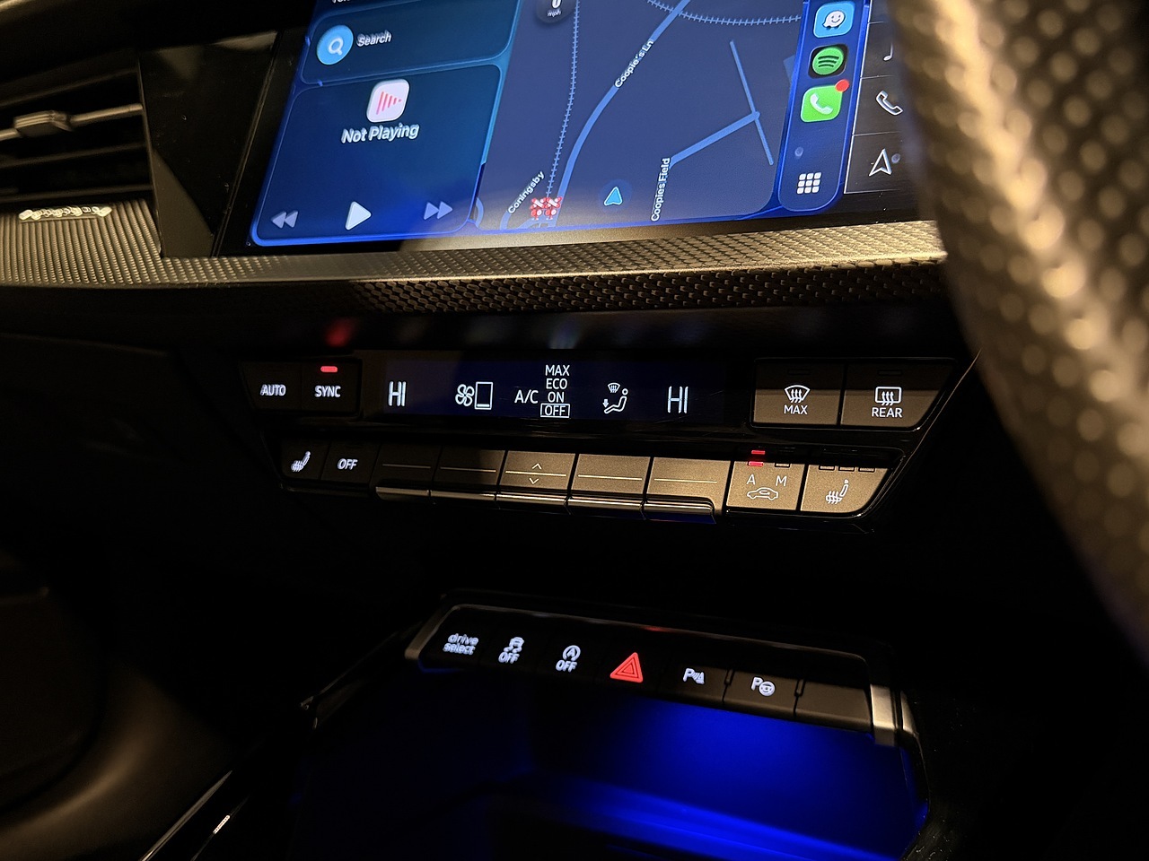 Performance is at the heart of this Audi. The legendary 5-cylinder engine is paired with the thrilling Milltek sports exhaust which can only be described as OEM+ like, offering an unmistakable tone. The car also benefits from adaptive suspension and adaptive cruise control, striking the perfect balance between comfort and dynamic handling. Completing the performance aesthetic is the tasteful carbon fibre Eventuri air intake along with the Maxton body kit, giving the RS3 an enhanced road presence.